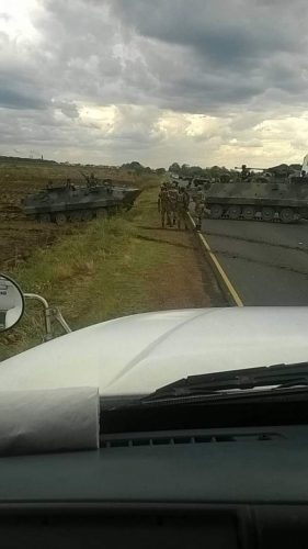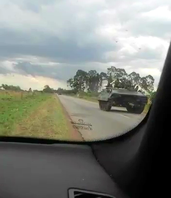 Online comments almost without fail are mistakenly calling these vehicles 'tanks'. In the above video, the narrator claims to have been passed by at least "ten tanks", headed to Harare from Chinhoyi, and speculates that the unsmiling passengers on the military vehicles "have orders".