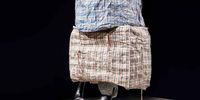 KUZVUVA DUMBU, 2019, Dan Halter. Found plastic-weave bags and wire frame, 230 x 100 x 38 cm, Wire work by Kuda Kuimba. Pattern making and stitching by Sibongile Tete. Photograph by Matthew Bradley