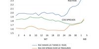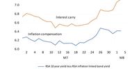 The cost of buying dollars for forward delivery has thus also widened, as has the compensation for bearing inflation risk in the RSA bond market. Both spreads are now over 6% for 10-year contracts. The attempts by the Reserve Bank to reduce inflation expected, by containing inflation itself (now about 4.5%, an outcome achieved by depressing domestic spending), have accordingly failed.