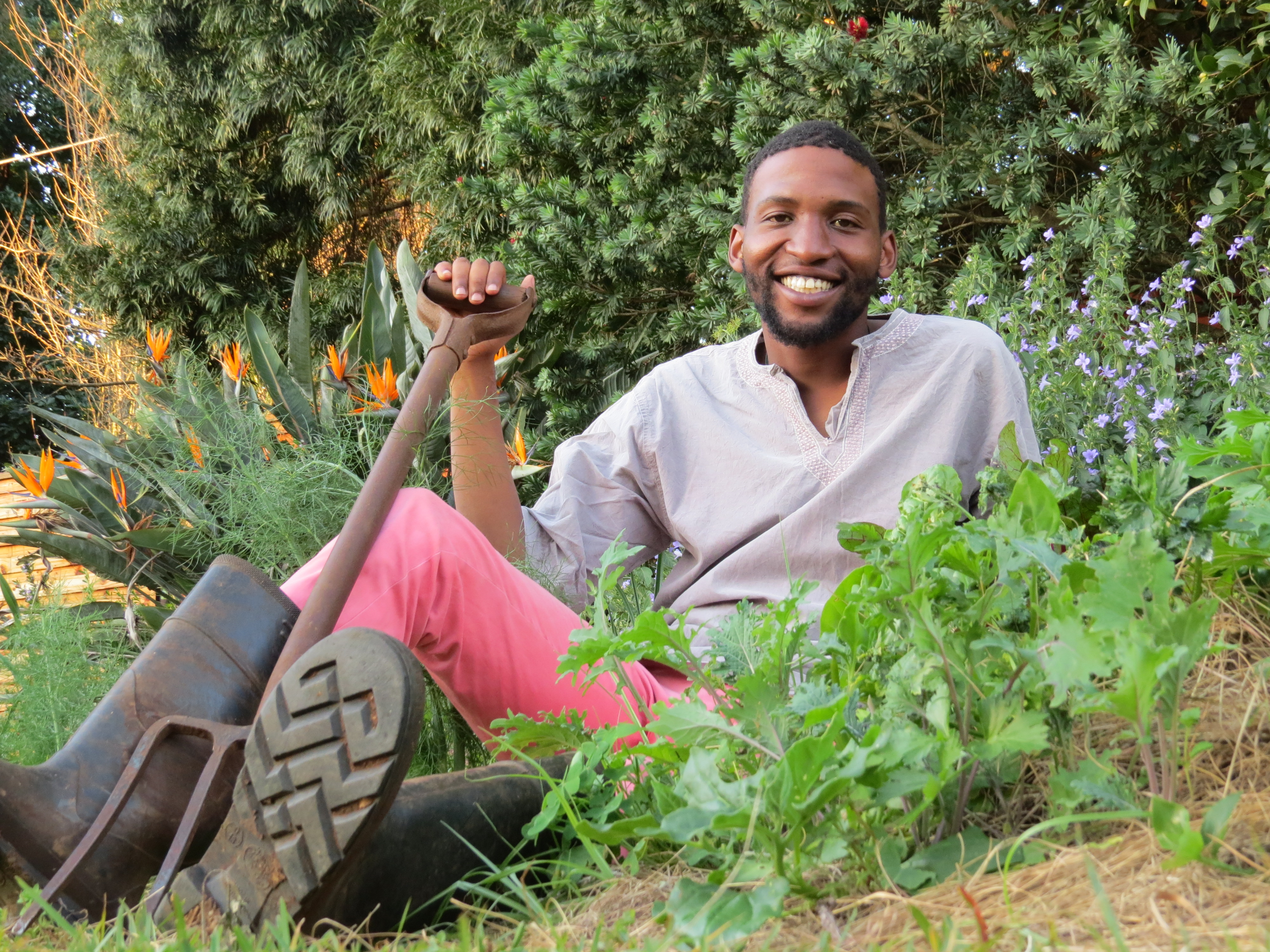 Xola Keswa, aka The Green Ranger, has invented a self-watering raised bed that uses wicking to deliver water to plants. (Photo: Nikki Brighton)