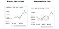 Prosus could also finance the deal through a mixture of debt and equity. Both Naspers and Prosus have seen strong share price appreciation in the last few months, largely because of their exposure to Tencent, which has proven remarkably resilient during the recent Covid-19-induced economic turmoil.