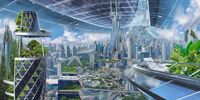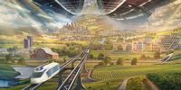“These are very large structures, miles on end, and they hold a million people or more each.” The digitally rendered images he presents of the world inside the colonies is populated by familiar terrestrial scenes: Green hills, mountains, farms, high-speed trains, skyscrapers, dams and suspicious-looking drones. “These are really pleasant places to live. Some of these colonies might choose to replicate Earth cities… these are ideal climates… no rains, no storms, no earthquakes,” he regales his audience, promising them that they can be close to Earth, “so that you can return”. The “road to space”, he says, will make it possible for these future Earthlings to travel between Earth and the space colonies in a matter of hours.