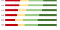 - The effect of Covid-19 pandemic: There is an increase in Level 0 in 2020. However, the proportion of Level 4 passes only slightly declined.