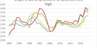 Graph 1 illustrates how banks’ provisions versus their advances are at very high levels compared to their history.