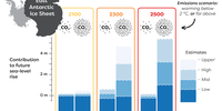 Over the next few centuries, however, the sea-level contribution from East Antarctica will depend critically on whether we manage to curb our emissions. If warming continues beyond 2100, sustained by high emissions, then East Antarctica could contribute around 1 to 3 metres by 2300 and around 2 to 5 metres by 2500, adding to the substantial contributions from Greenland and West Antarctica and threatening millions of people who inhabit coastal areas.