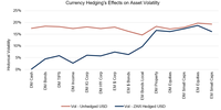 The chart below highlights that there is a strong case in favour of hedging the currency risk in bonds and credit and, in so doing, significantly reducing asset class volatility. In the fixed income space, namely bonds and credit, the risk of not hedging currency volatility is higher than it is in the equities and listed property space.