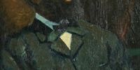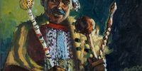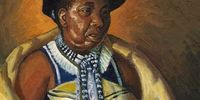 George Pemba met Mqhayi sometime in the late 1930s or early 1940s and the poet made a great impression on him. The artist often visited the poet laureate at his home near King William’s Town in the Eastern Cape. The two became firm friends and in 1941, Pemba completed a portrait of Mqhayi. The work was displayed in the gallery at what is now the University of Fort Hare (originally the South African Native College) and depicted Mqhayi in traditional Xhosa dress – as in The Poet which was painted nearly 20 years later.