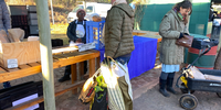 I’m rather fascinated by the shopping carriers. AB, now buying artisanal loaves, has a clutch of capacious bags but I’ve seen pull-barrows, transformed baby’s pushchairs and bright wooden boxes on wheels for pulling along, which AB says are hired out by the market themselves. Such is the desire and such is the demand for transporting large amounts of purchases. The carrier vehicles and luggage say a lot about how people use this market. It’s a serious shopping situation with light asides of snacks and coffees.
