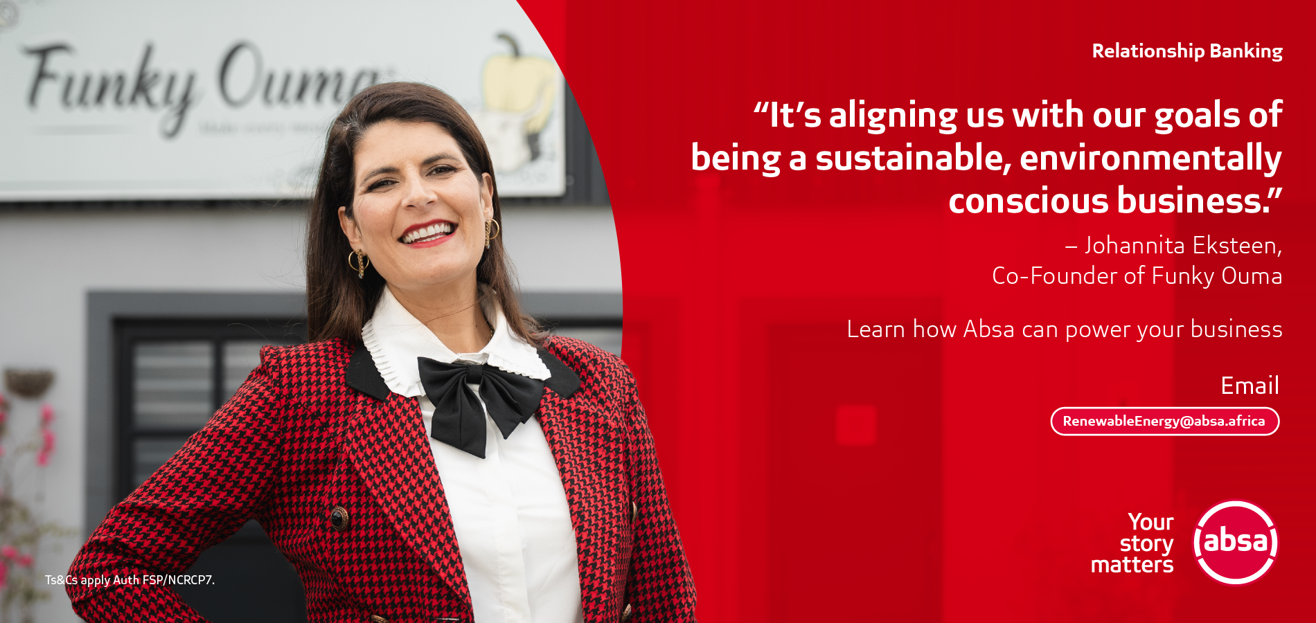 The scheme not only empowers these enterprises but also contributes to a more sustainable future. It continues to accentuate the cash-generative elements of PV systems to support client’s business continuity. In addition, Absa through the scheme provides solutions that enable clients to adhere to environmental, social and governance (ESG) principles and other key policy reforms – such as the Climate Change Bill, Carbon Tax and now the Carbon Border Adjustment Mechanism (CBAM) – with alleviated disruptions to business productivity.