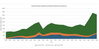 These exports from South Africa benefit from a 2.5% preference into the US market relative to other competitors without preferential market access. South Africa, however, imposes tariffs of between 20% to 25% on US exports of these products.