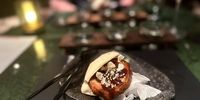 My second favourite course came next: hiragana (steamed buns) with a filling of chashu pork, carrot, cucumber and sesame; so delicious. Then, from the robot grill, the most delectably tender and madly flavourful spring chicken glazed with Cunard Jukusei Sake Kasu (a white paste from the pressed lees of sake during its production). I could easily have chosen the cedar-planked sea bass with sudachi (Japanese green citrus), miso, and sliced ponzu. But I’m glad I chose the spring chicken.