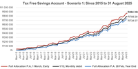 If you had have invested the full yearly allocation into an MSCI AC World Index tracker (ZAR) over the period, you would have grown the R375k over the past 11 years. How you timed your investment also makes a significant difference to the outcome. In the three scenarios’ below, you can see the difference time in the markets has made between adding on 1 March (beginning of the year), monthly (1/12th each month debit order) or last minute.com on 28 February. The early bird option would have made you R130k more to date (R864k).