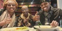 Naomi Campbell, Bradly Cameron and Lee Jacobs enjoy a meal at Amazink in Kayamandi, Stellenbosch. (Photo: Naomi Campbell)