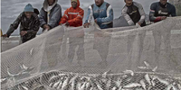 Trek netting is when you anchor the net on the shore with a rope and then the crew takes a rowboat out. They row in a circle with the net and bring it back to shore, pulling both ends together. That way, the net closes like a purse.