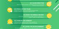 • Cadence: a 30-minute weekly review embedded in calendars, non-negotiable. Same agenda every time.