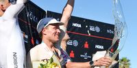 Matthew Marquardt celebrates winning the Ironman African Championship in Nelson Mandela Bay on Sunday in a course record of 7:42:57. (Photo: Deon Ferreira)